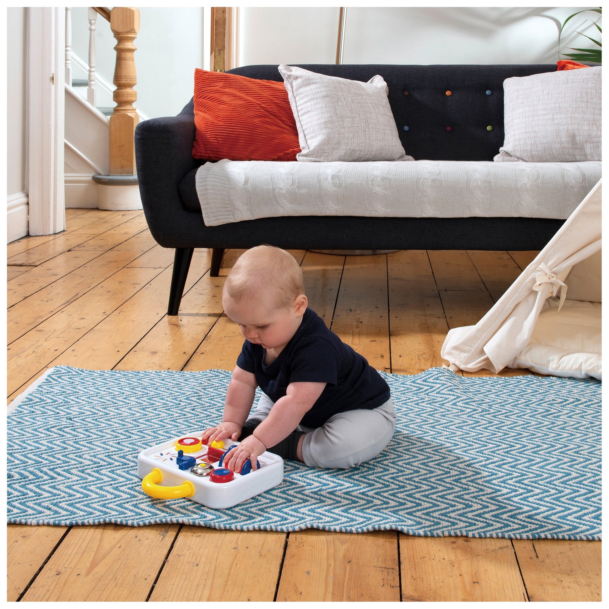 A colourful activity centre with 6 activities for little hands to explore. Press the button and it squeaks, pull back the blue bird to chime the bell, slide the mirror to see who's hiding underneath. Encourages manual dexterity and the learning of cause and effect. Awarded 'Recommended' status by the Good Toy Guide.