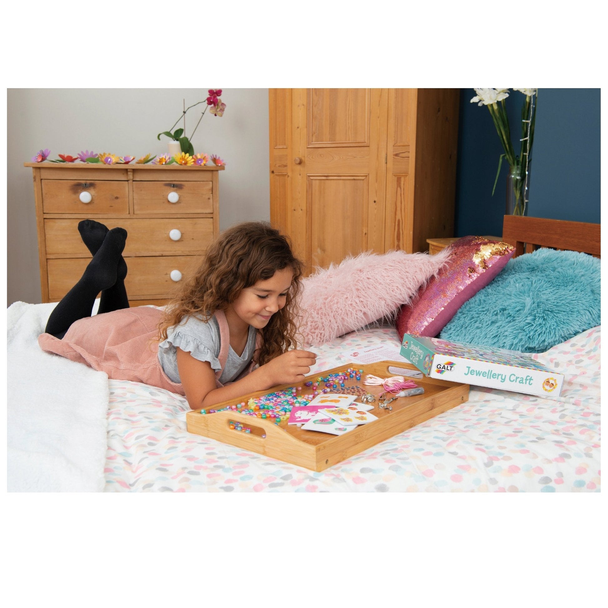 Make fun beaded bracelets and necklaces and decorate foam shapes with gems and glitter glue then mount on earrings, rings and hair clips to make cool jewellery. Contents: 300 pony beads, assorted foam shapes and beads, stick-on gems, 2 pairs of clip-on earrings, 2 rings, 2 hair clips, silky cord, elastic, sticky foam pads, glitter glue, guide.